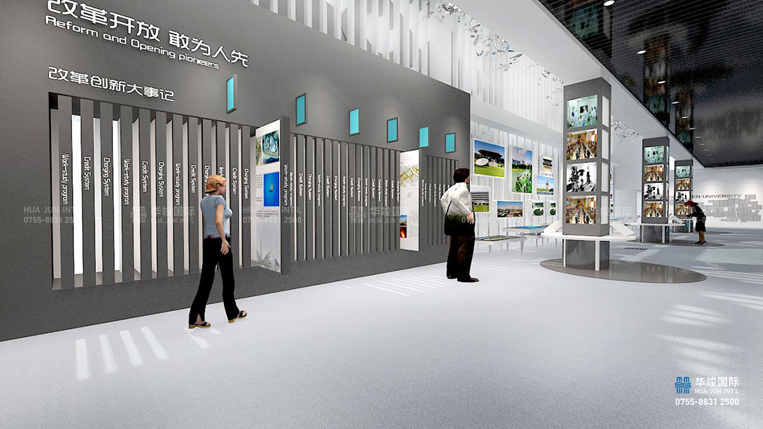 深圳大學校史館設計項目由華竣數創執行整體設計施工,華竣數創是專業的博物館設計布展一體化服務商,采用源自香港的國際化設計理念,注重空間主體化、歷史故事化、展項場景化,更注重其承載的文化的展現。