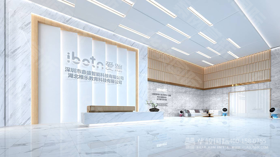 序廳以白色為基調,寓意ibotn愛蹦投身智慧幼教的初心純凈美好。