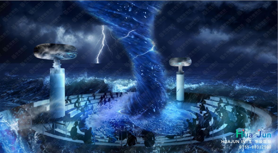 科技海洋-乘風破浪。運用全息投影講解海洋上臺風、海浪、龍卷風等自然的特點,并進行科學講解。大家在座椅上觀看,座椅可以上下、左右轉動,和視頻畫面形成聯(lián)動效果。比如臺風分為幾級?會有多大的力量,觀眾在觀看的同時感受臺風的力量,形成沉浸式空間。