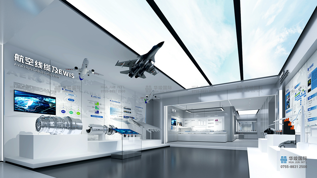 工業領域:軍工電纜,智能裝備電纜,工業機器人用移動軟電纜。“線纜應用”智能交互技術,在飛機模型場景中,呈現飛機切面結構的線纜分布圖,結合互動屏幕,多角度演繹飛機線纜線束、總線線纜的實際應用。