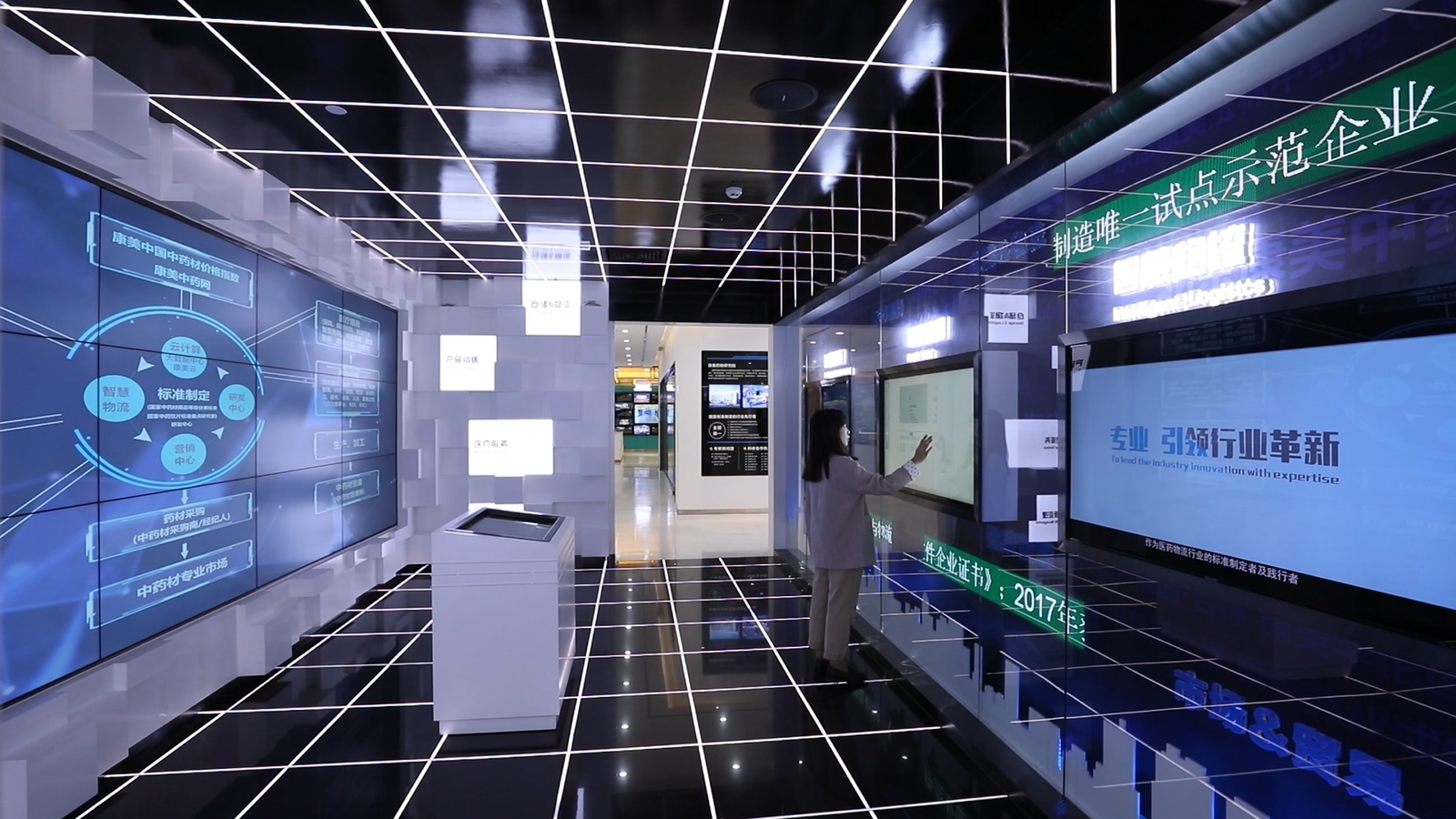 互動甩屏體驗區(qū)——環(huán)繞聲像立體呈現(xiàn)康美全產(chǎn)業(yè)鏈