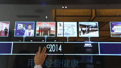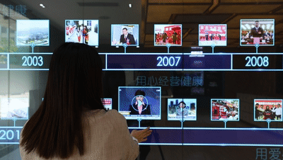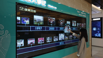 組成近四米長的“康美大事記”多點觸控墻